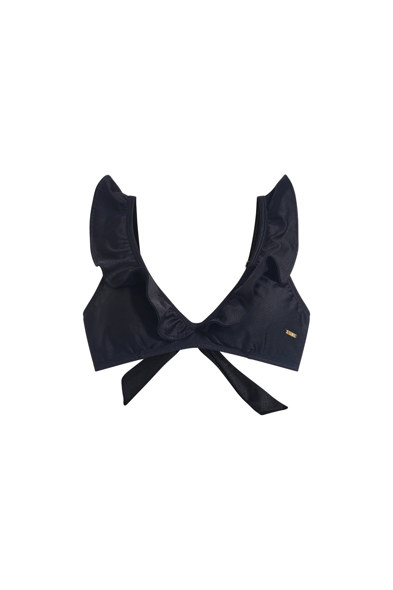 Elevate your beach look with our Bahamas black bikini top featuring adjustable sliders that allow for a perfect fit. it's the ideal companion for pairing with our Manly Tropical Leaves Bottom.