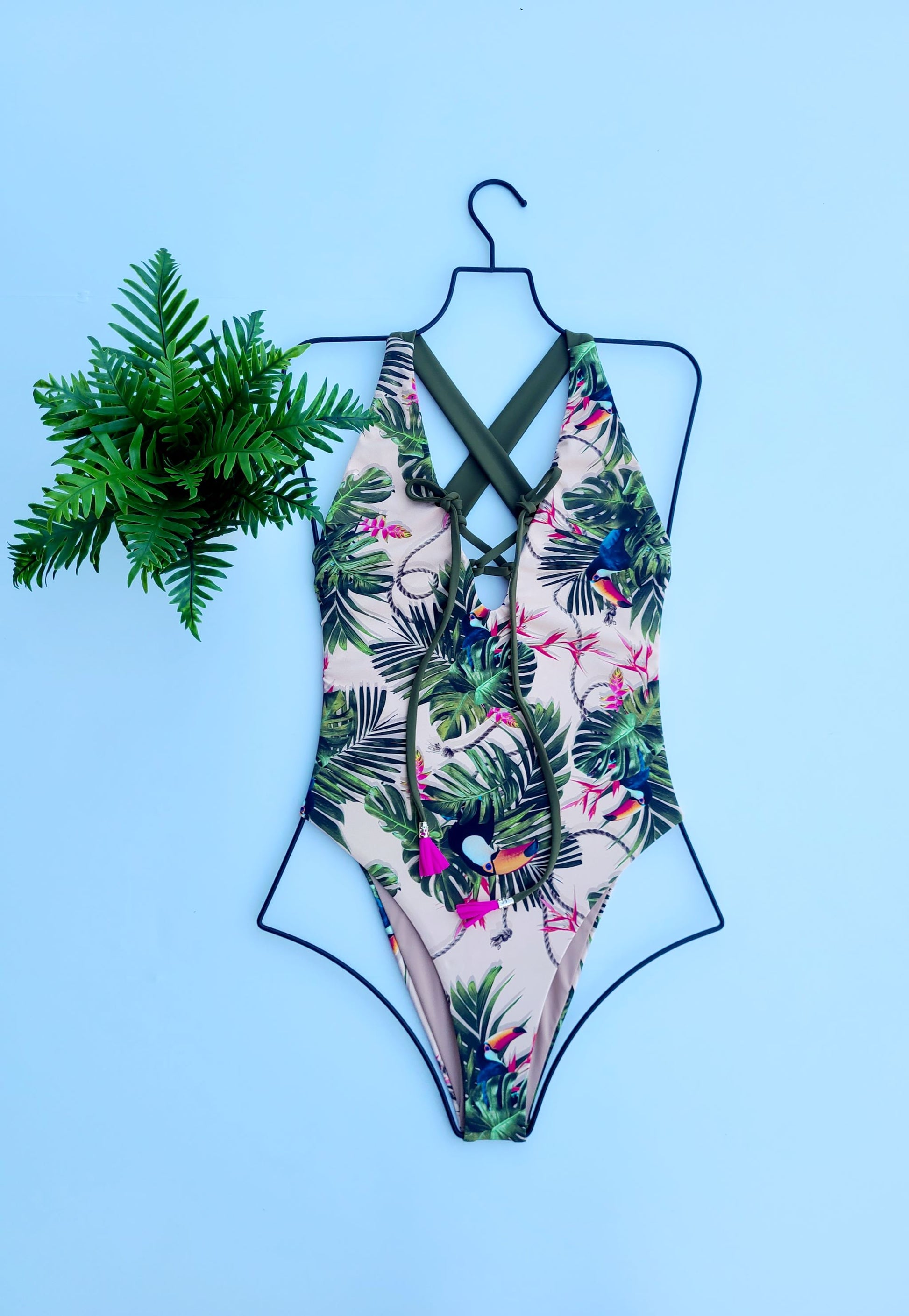 Combining the allure of a one-piece and the chic vibe of a bodysuit, our 100% sexy creation features a captivating V-plunge with front strings and a stylish cross-back design. The convertible straps offer endless possibilities, allowing you to showcase your figure in multiple ways.