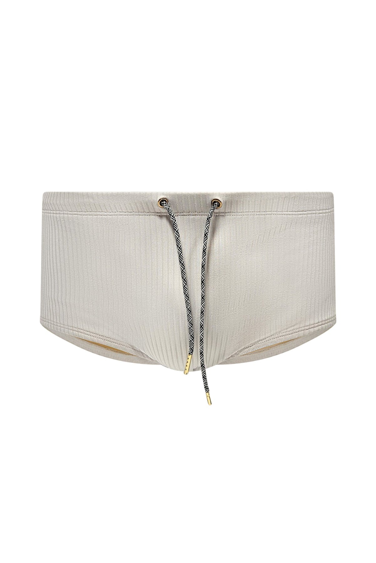 Step into timeless style with the White Ribbed Texture Swim Trunk, designed for both comfort and elevated design. This low-rise, square-cut trunk features a 6-inch outseam for a more conservative fit ideal for those who want coverage without compromising on style.